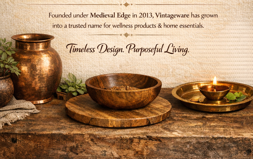 Each piece is thoughtfully designed and hand-crafted by skilled artisans who carry forward India’s rich metalwork and natural-material traditions — ensuring durability, elegance, and mindful living.