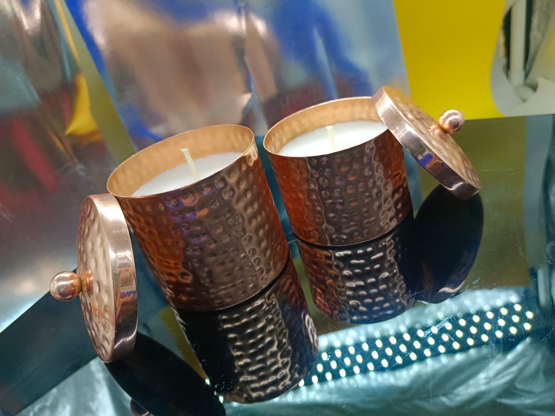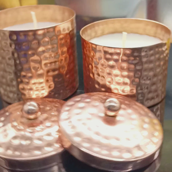 ELEGANT COPPER FINISH JAR – Housed in hammered copper metal jar with lids, these candles double as stylish home décor accents.