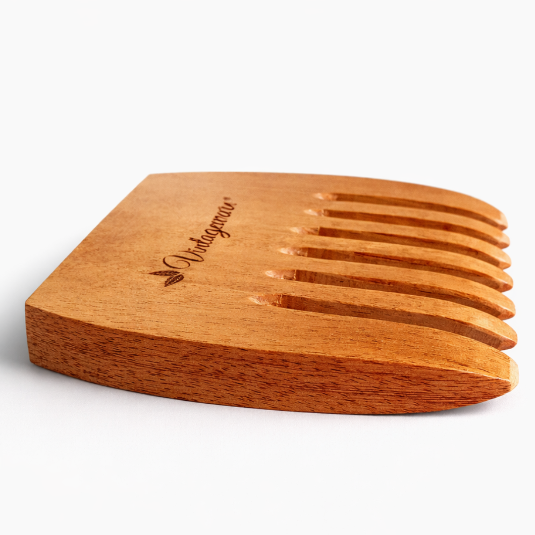 Crafted from pure neem wood, this comb helps reduce static, control frizz, and gently detangle hair without breakage — making it ideal for daily use.
