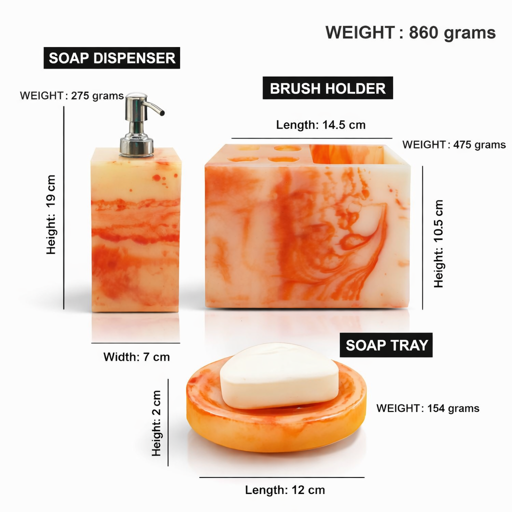 Upgrade your bathroom aesthetics with the Vintageware® Resin Bathroom Accessories Set — a perfect fusion of elegance and function. Designed to elevate your space, this 3-piece set includes a liquid soap dispenser, a toothbrush holder, and a soap dish tray, all made from durable, rust-resistant resin. Whether you're styling a modern bathroom, gifting a new homeowner, or refreshing your vanity, this set adds a luxurious yet practical touch to your décor. With a sleek design and a chrome-finished pump, each piece complements both traditional and contemporary interiors. Proudly made in India with premium craftsmanship, it's the bathroom upgrade you’ve been looking for.